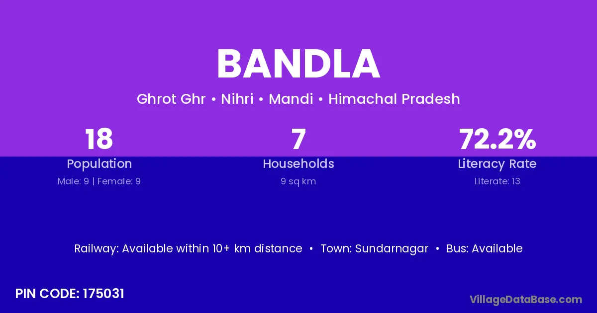 According to Census 2011 information, the village code of Bandla village is 174001.