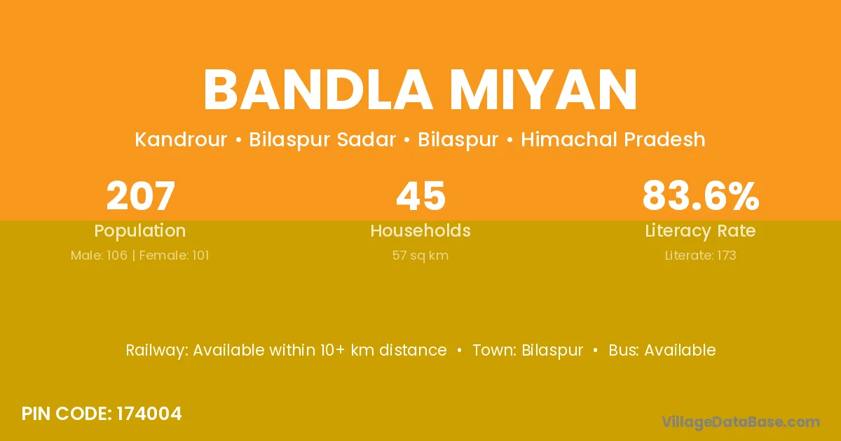 According to Census 2011 information, the village code of Bandla Miyan village is 174004.