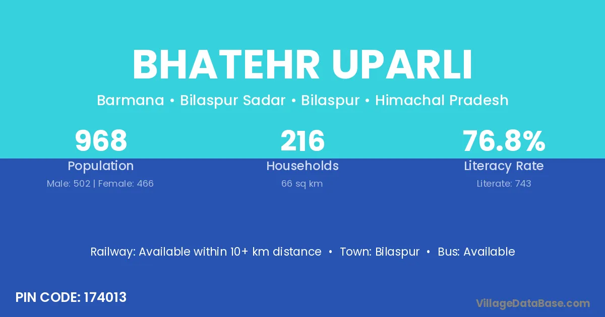 Bilaspur is the nearest town to Bhatehr Uparli village for major economic activities