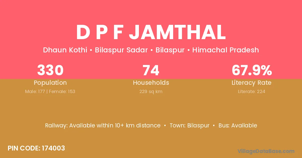 D P F Jamthal village has a total population of 330 people, of which 177 are males and 153 are females.