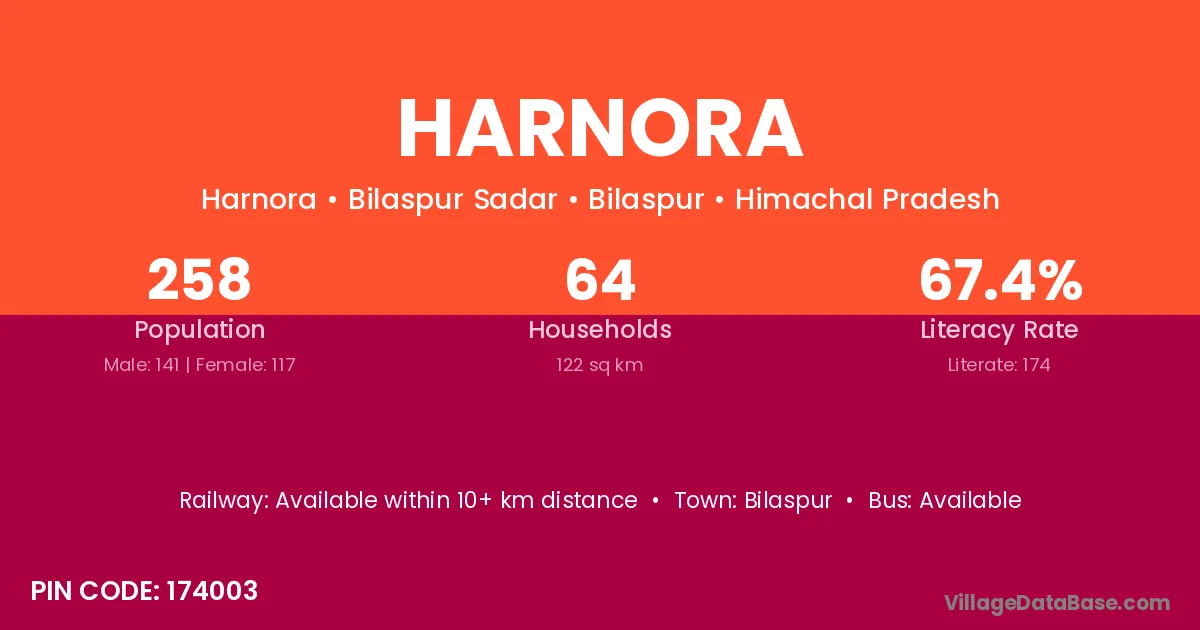According to Census 2011 information, the village code of Harnora village is 174003.