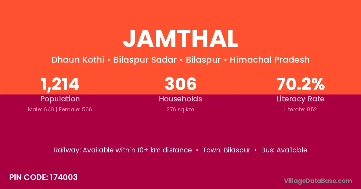 Jamthal village has a total population of 1,214 people, of which 648 are males and 566 are females.