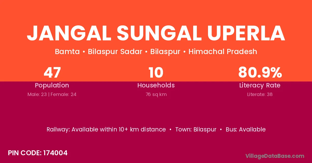 Jangal Sungal Uperla village has a total population of 47 people, of which 23 are males and 24 are females.
