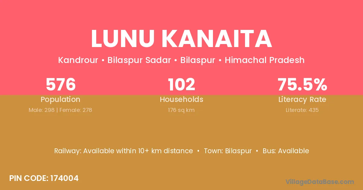 Lunu Kanaita village has a total population of 576 people, of which 298 are males and 278 are females.