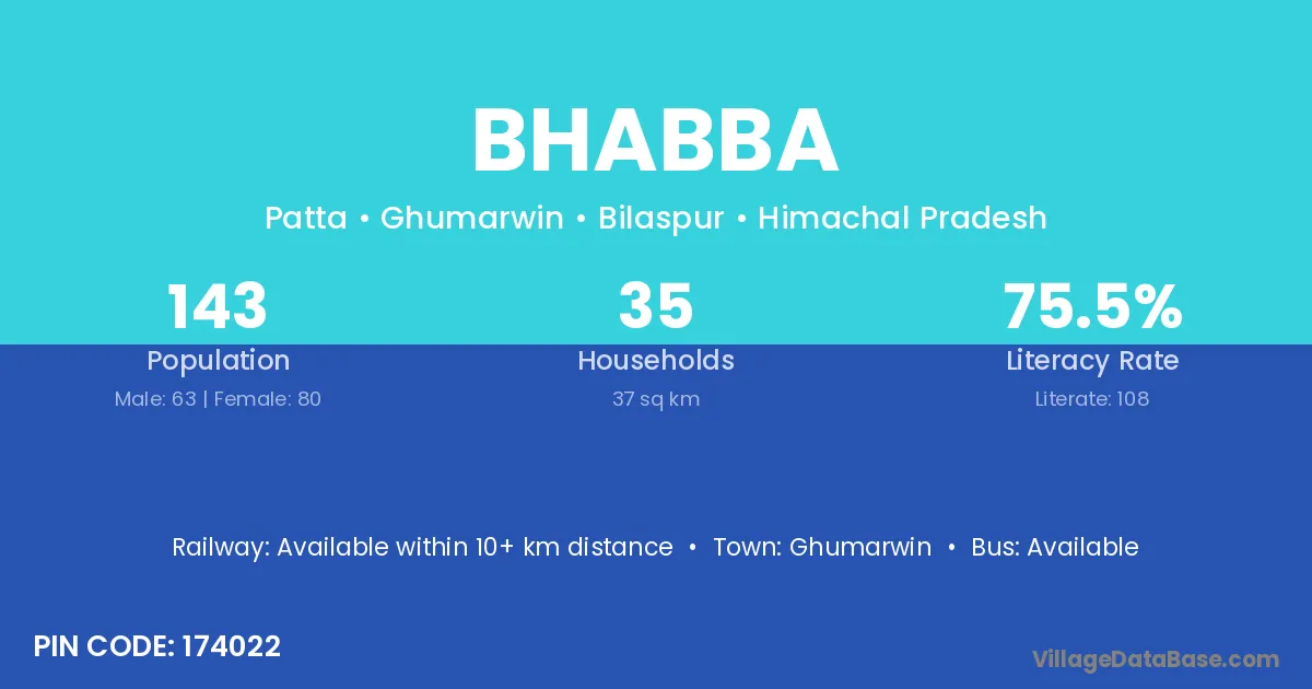 According to Census 2011 information, the village code of Bhabba village is 174022.