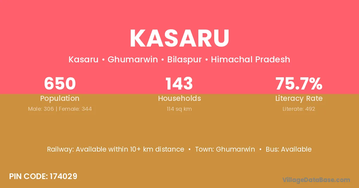 Kasaru village has a total population of 650 people, of which 306 are males and 344 are females.