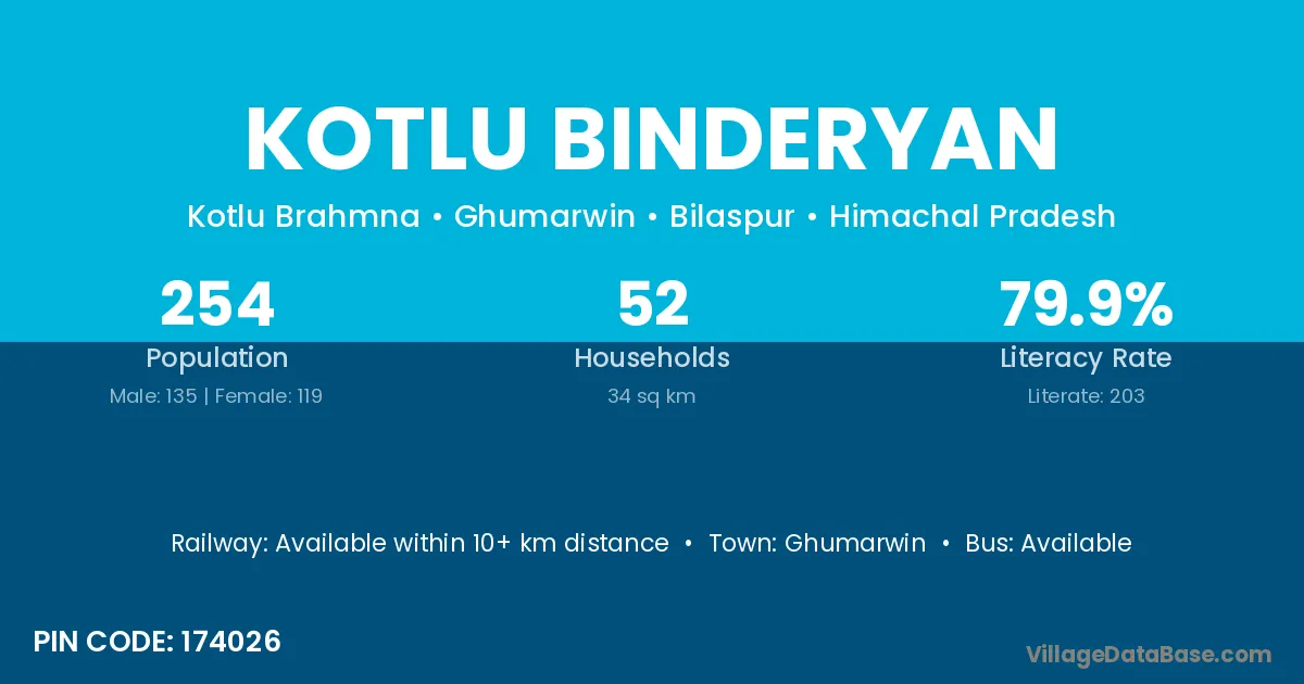 According to Census 2011 information, the village code of Kotlu Binderyan village is 174026.