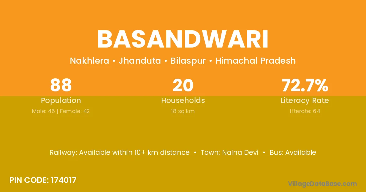 Basandwari village has a total population of 88 people, of which 46 are males and 42 are females.