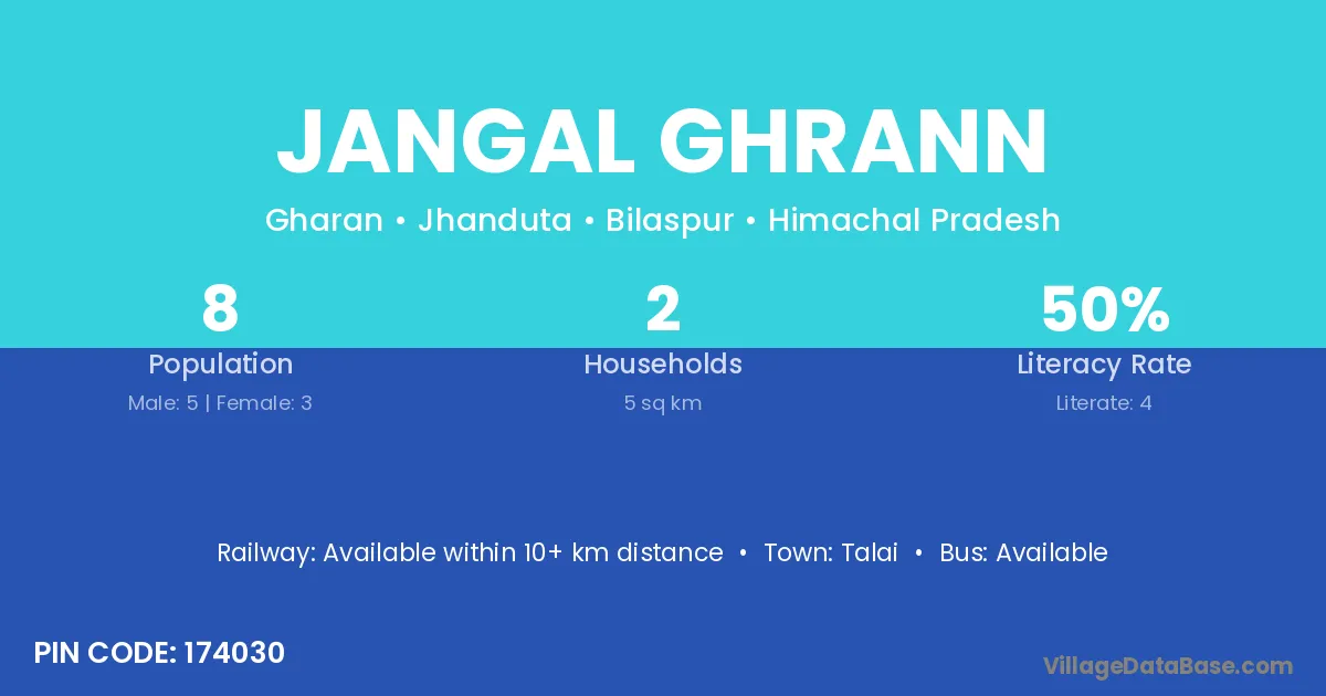 Jangal Ghrann village has a total population of 8 people, of which 5 are males and 3 are females.