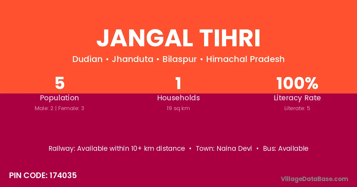 Jangal Tihri village has a total population of 5 people, of which 2 are males and 3 are females.