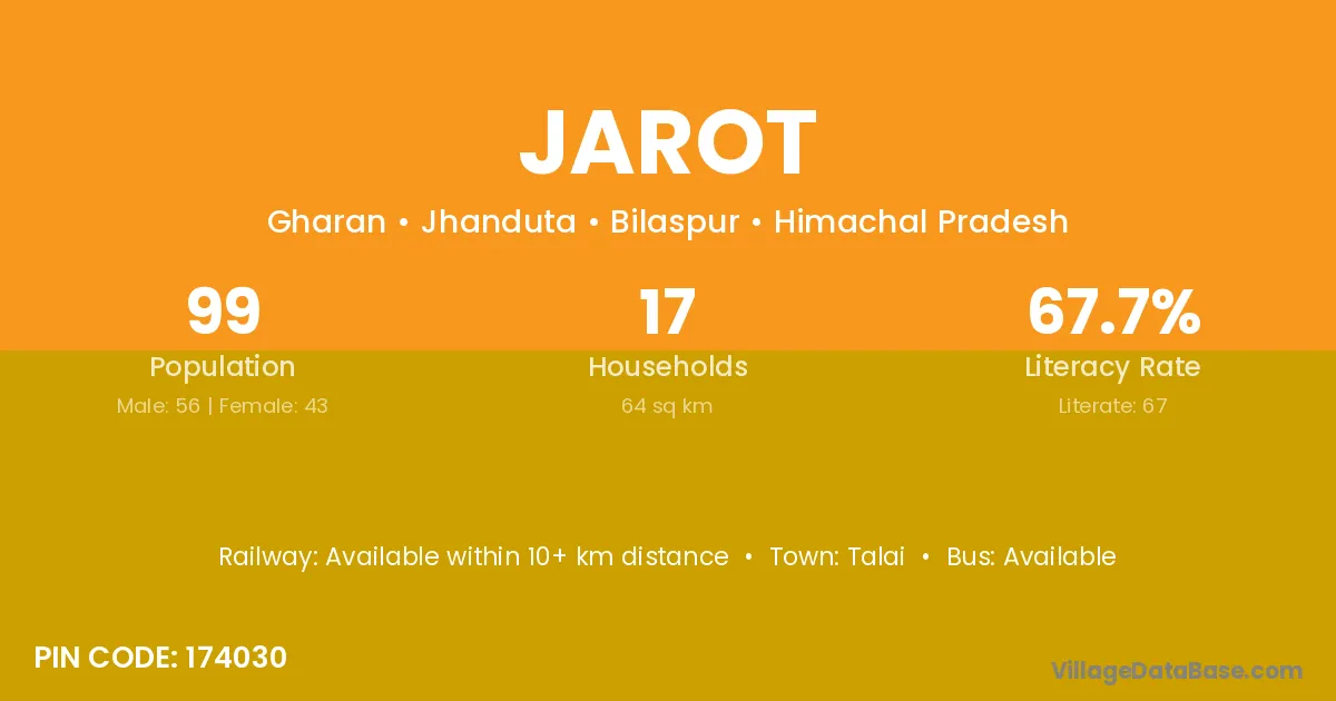 Jarot village is located in the Jhanduta Tehsil of the Bilaspur district in Himachal Pradesh .