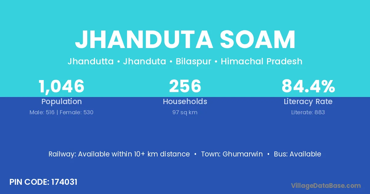 Jhanduta Soam village has a total population of 1,046 people, of which 516 are males and 530 are females.