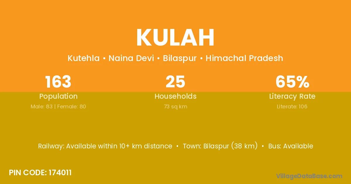 Bilaspur (38 km) is the nearest town to Kulah village for major economic activities and is located approximately 38 km away.