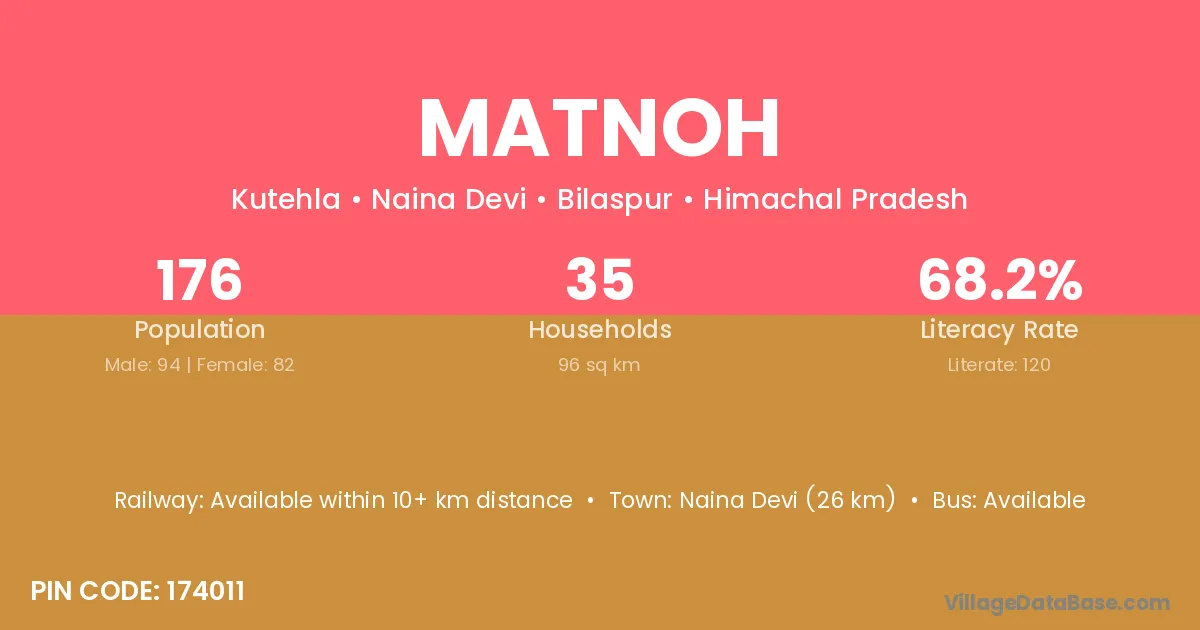 Naina Devi (26 km) is the nearest town to Matnoh village for major economic activities and is located approximately 26 km away.