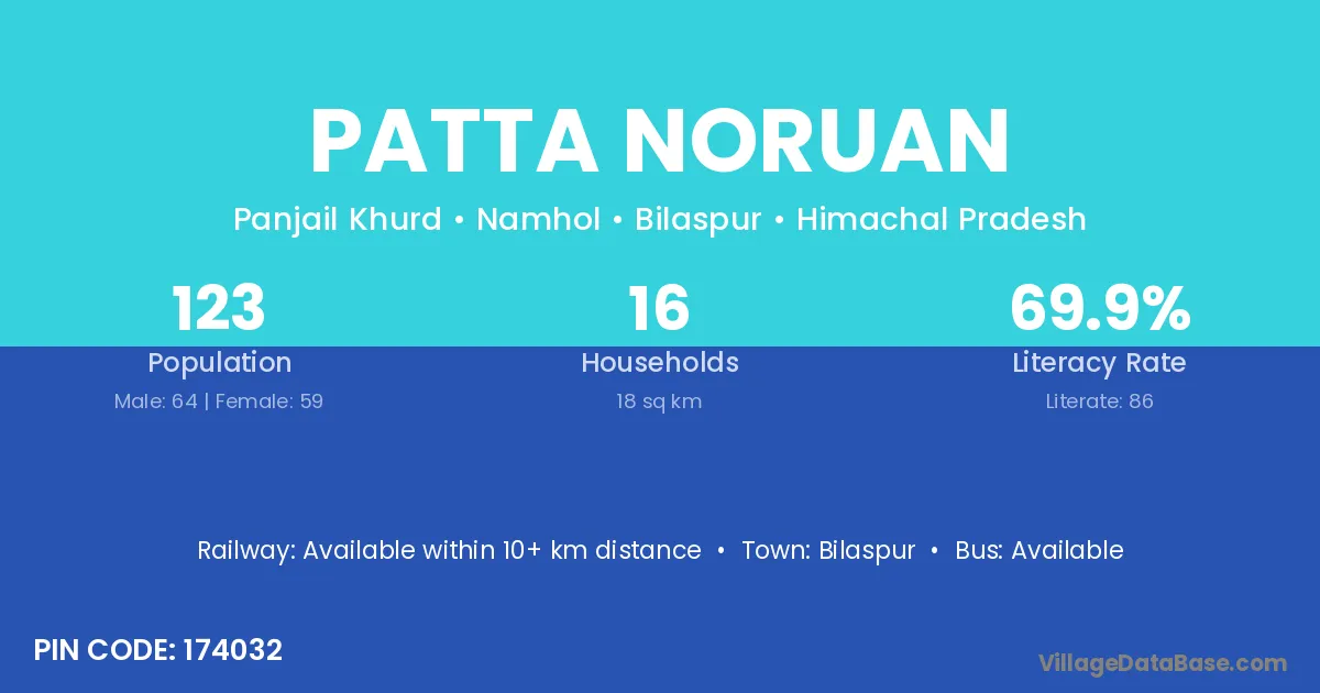 Patta Noruan village has a total population of 123 people, of which 64 are males and 59 are females.