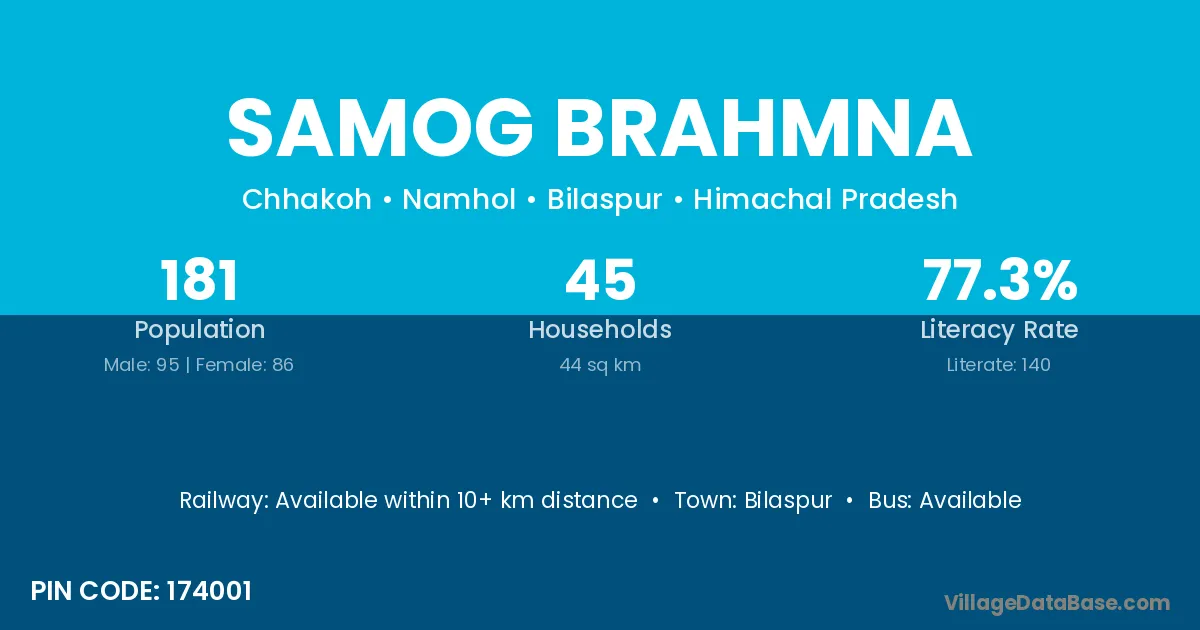 Samog Brahmna village has a total population of 181 people, of which 95 are males and 86 are females.