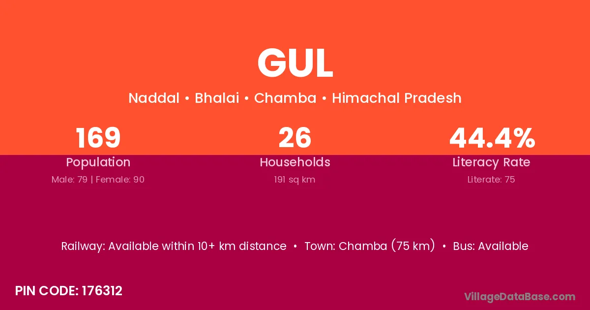 According to Census 2011 information, the village code of Gul village is 176312.