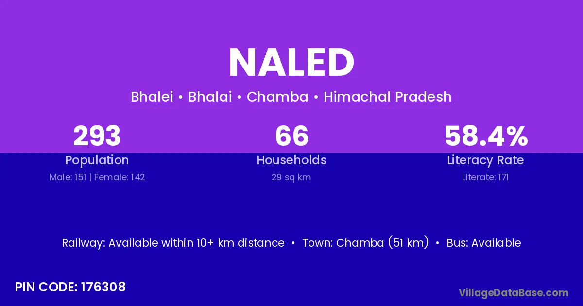 Chamba (51 km) is the nearest town to Naled village for major economic activities and is located approximately 51 km away.
