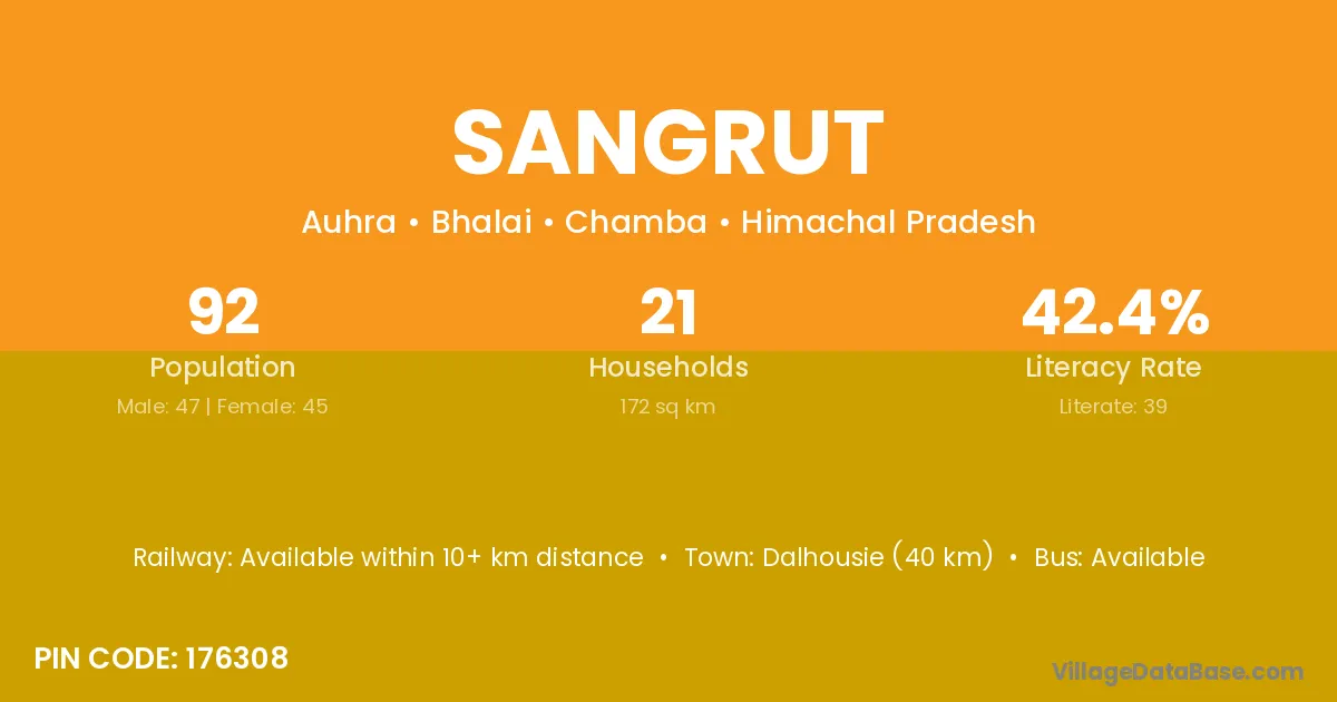 Dalhousie (40 km) is the nearest town to Sangrut village for major economic activities and is located approximately 40 km away.