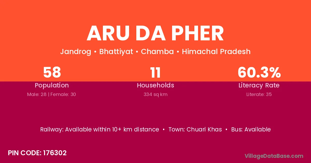Aru Da Pher village has a total population of 58 people, of which 28 are males and 30 are females.