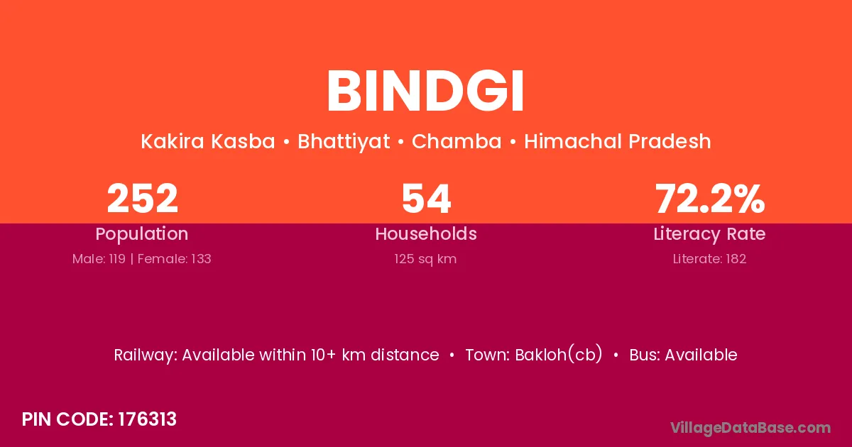 Bakloh(cb) is the nearest town to Bindgi village for major economic activities