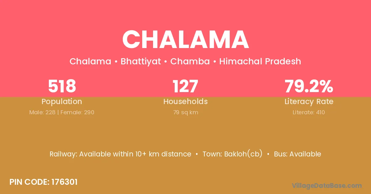 Bakloh(cb) is the nearest town to Chalama village for major economic activities