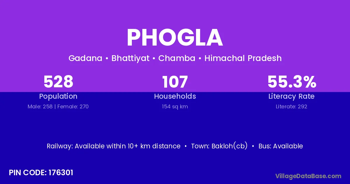 Bakloh(cb) is the nearest town to Phogla village for major economic activities