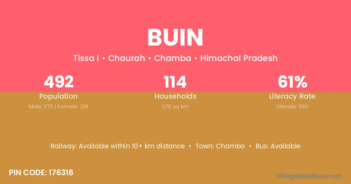 Buin village is located in the Chaurah Tehsil of the Chamba district in Himachal Pradesh .