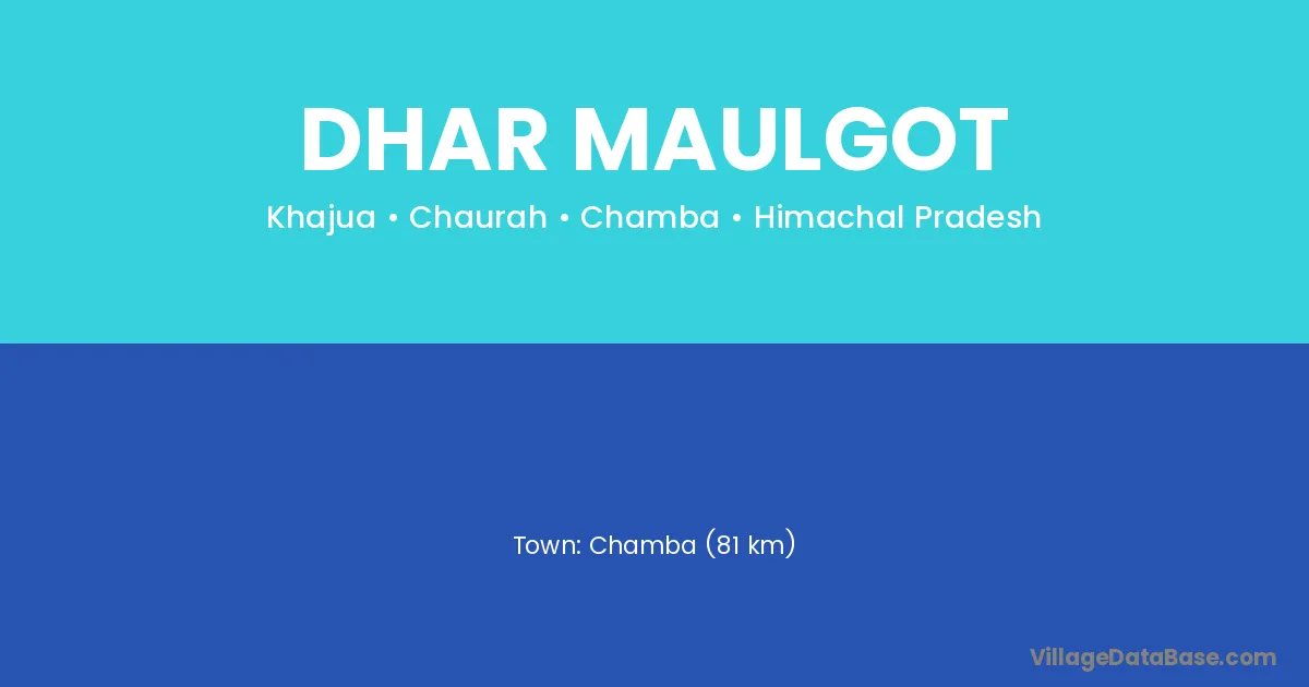 Chamba (81 km) is the nearest town to Dhar Maulgot village for major economic activities and is located approximately 81 km away.