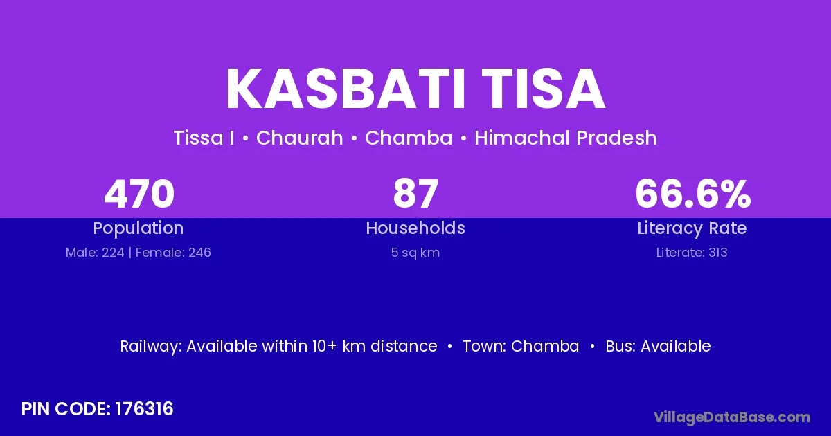 Chamba is the nearest town to Kasbati Tisa village for major economic activities