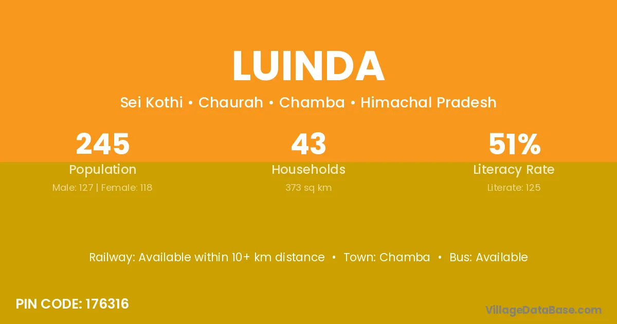 Luinda village has a total population of 245 people, of which 127 are males and 118 are females.