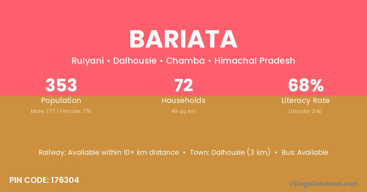 Dalhousie (3 km) is the nearest town to Bariata village for major economic activities and is located approximately 3 km away.
