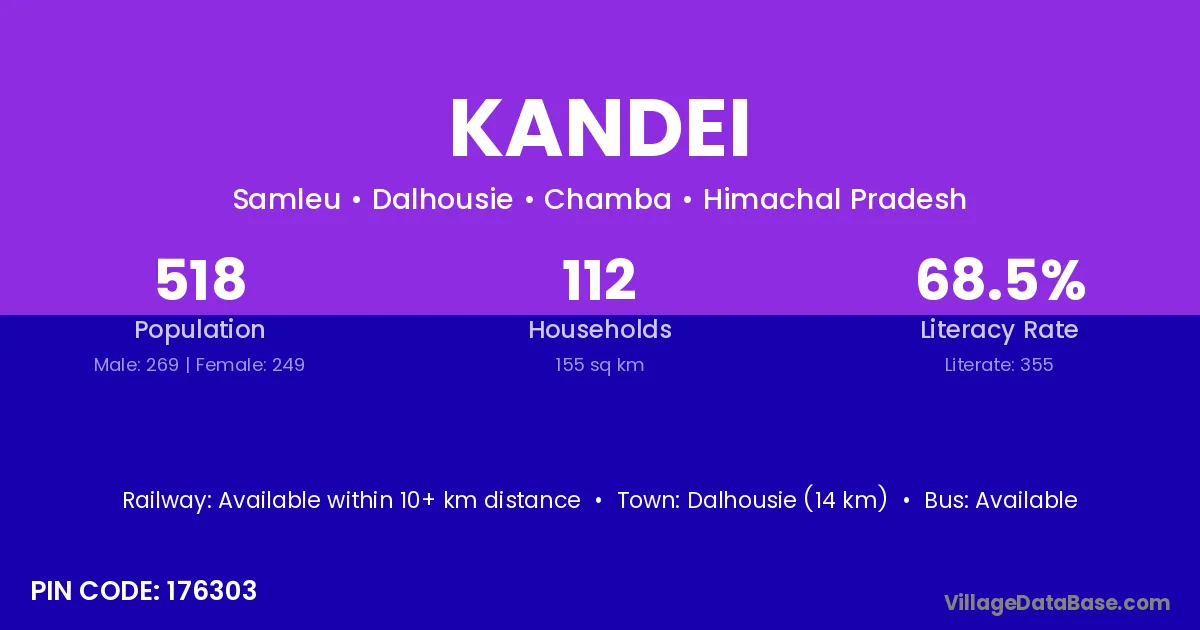 Dalhousie (14 km) is the nearest town to Kandei village for major economic activities and is located approximately 14 km away.
