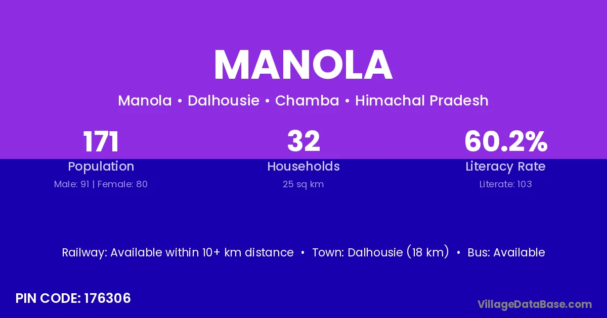 Dalhousie (18 km) is the nearest town to Manola village for major economic activities and is located approximately 18 km away.