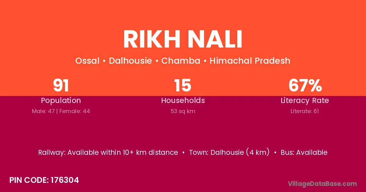 Dalhousie (4 km) is the nearest town to Rikh Nali village for major economic activities and is located approximately 4 km away.