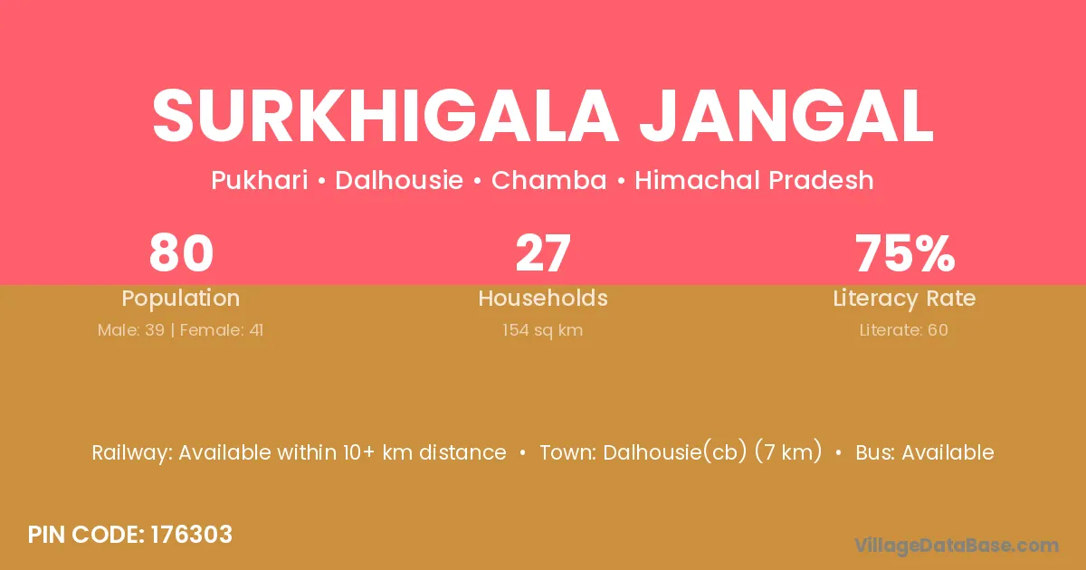Surkhigala Jangal village has a total population of 80 people, of which 39 are males and 41 are females.