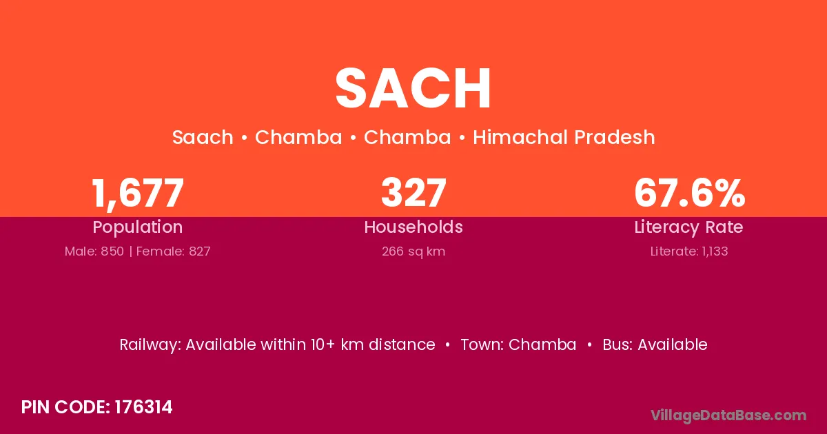 Sach village has a total population of 608 people, of which 309 are males and 299 are females.
