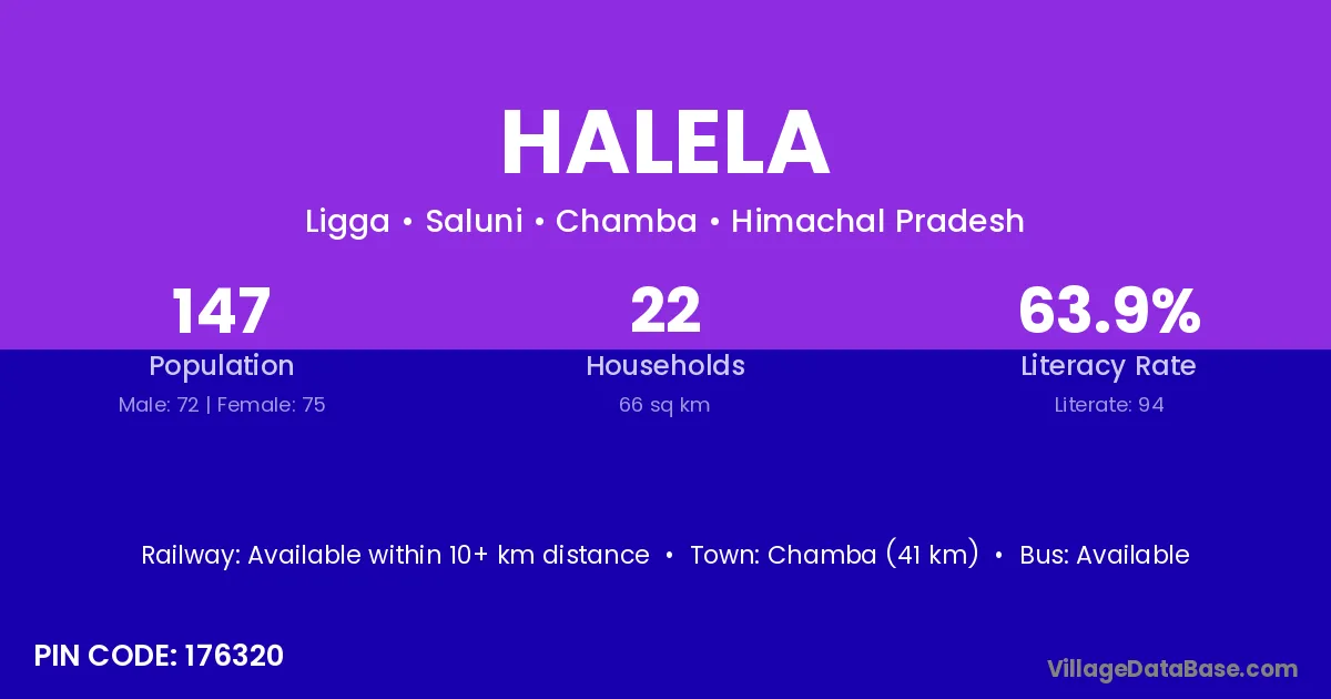 Chamba (41 km) is the nearest town to Halela village for major economic activities and is located approximately 41 km away.