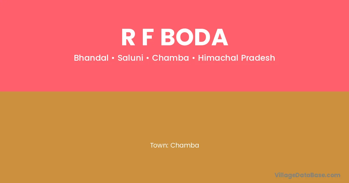 R F Boda village is located in the Saluni Tehsil of the Chamba district in Himachal Pradesh .