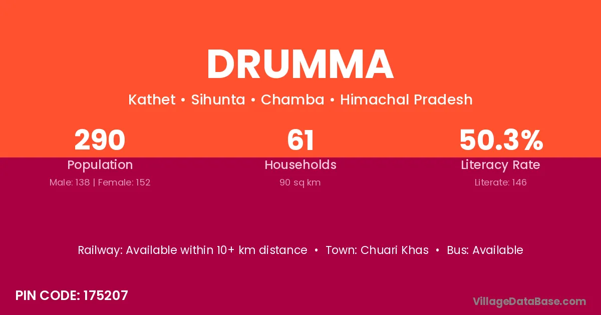 Drumma village is located in the Sihunta Tehsil of the Chamba district in Himachal Pradesh .
