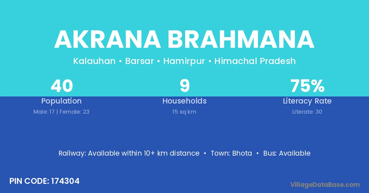 According to Census 2011 information, the village code of Akrana Brahmana village is 174304.