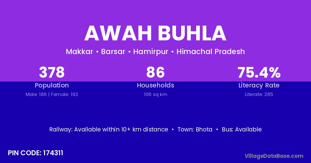 Awah Buhla village has a total population of 378 people, of which 186 are males and 192 are females.