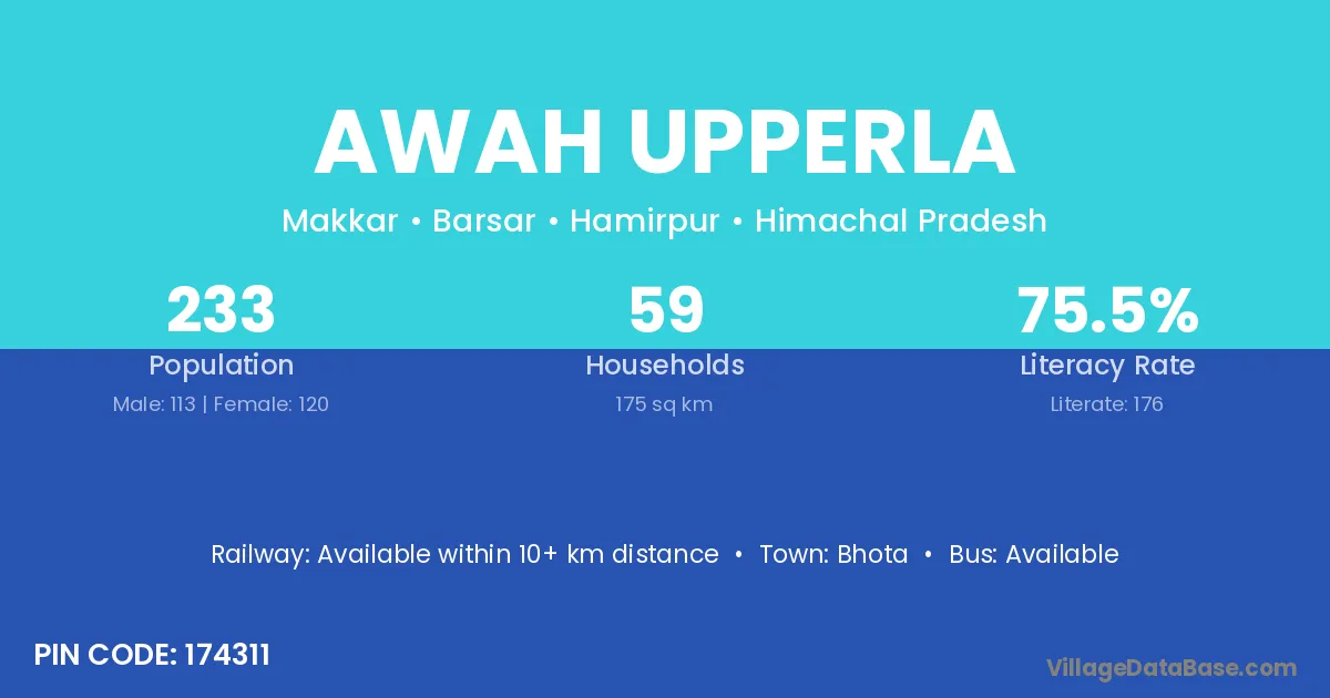 Awah Upperla village has a total population of 233 people, of which 113 are males and 120 are females.