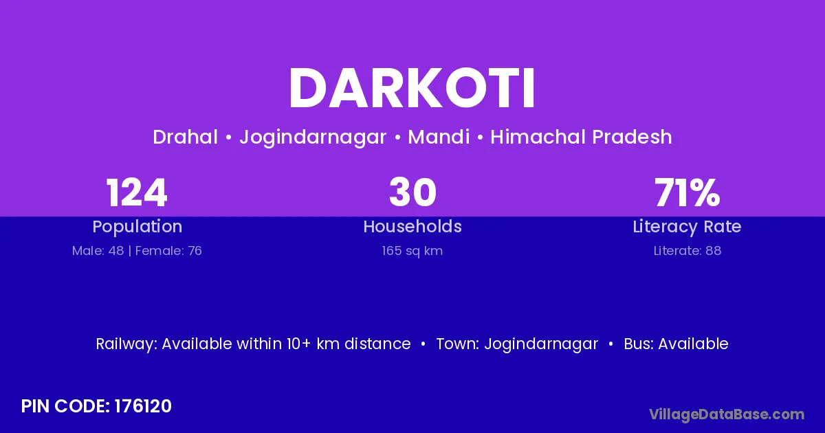 According to Census 2011 information, the village code of Darkoti village is 174305.