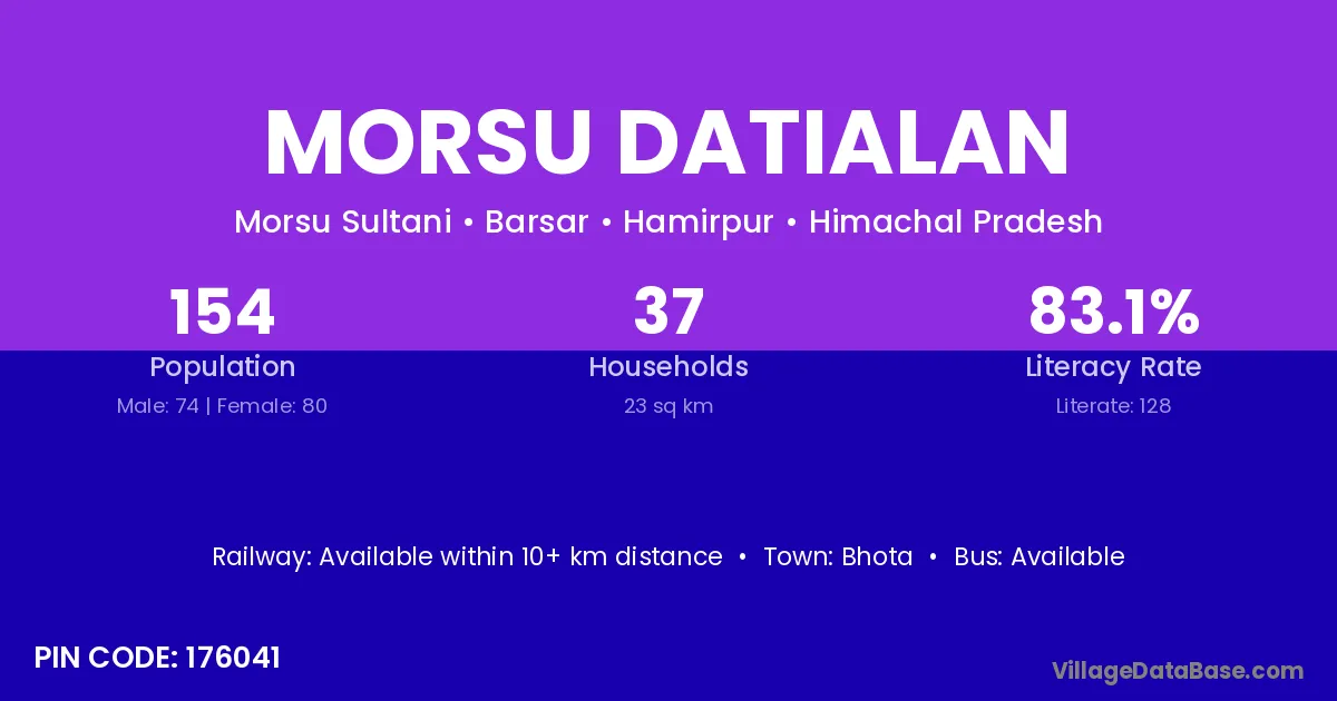 Morsu Datialan village has a total population of 154 people, of which 74 are males and 80 are females.