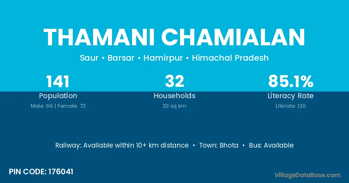 According to Census 2011 information, the village code of Thamani Chamialan village is 176041.