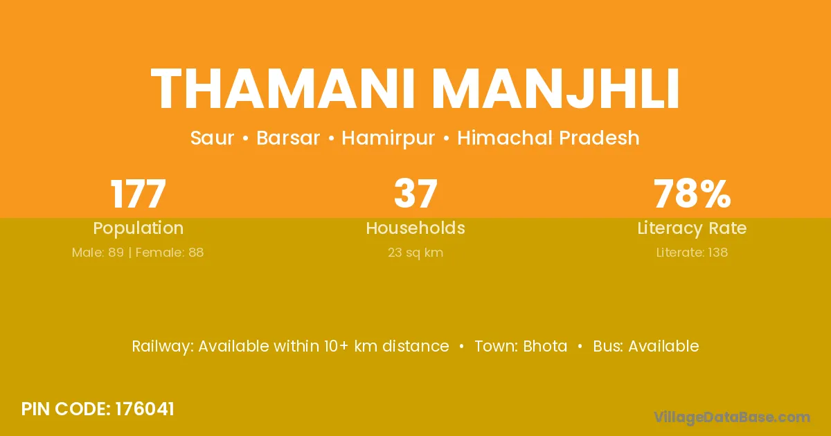 According to Census 2011 information, the village code of Thamani Manjhli village is 176041.