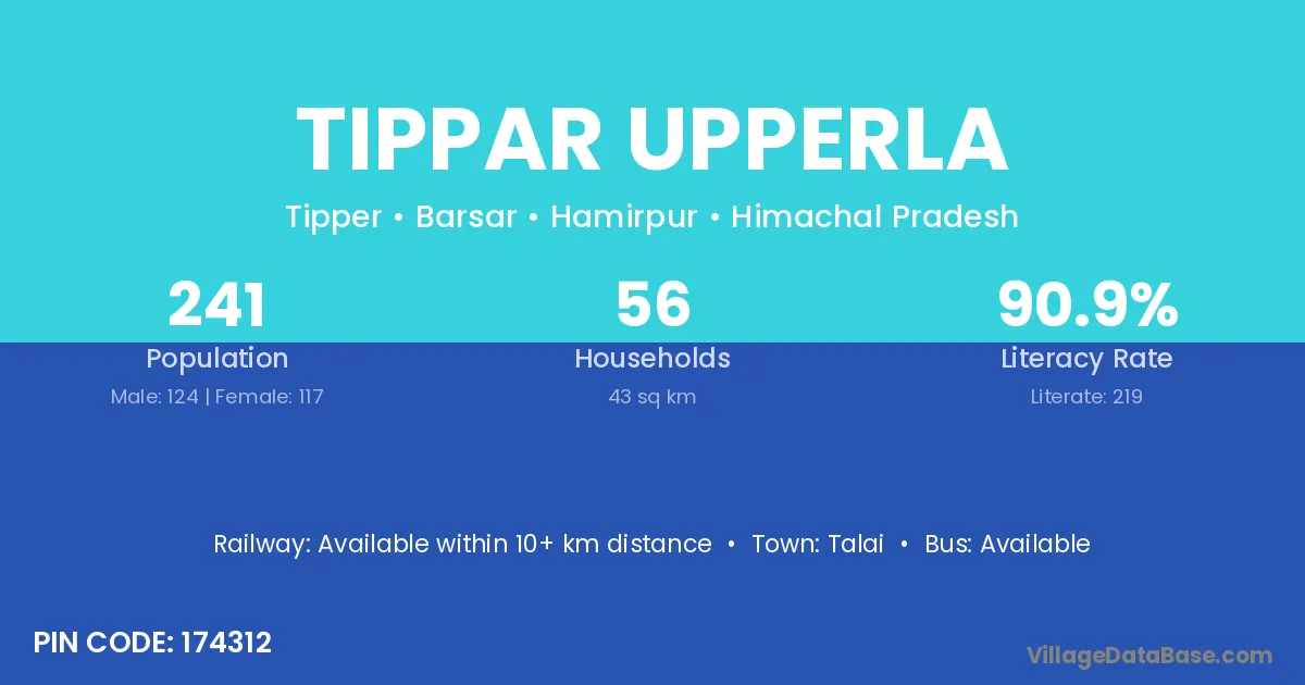 Tippar Upperla village has a total population of 241 people, of which 124 are males and 117 are females.