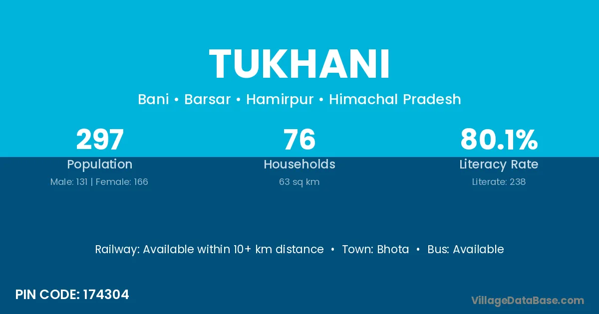 According to Census 2011 information, the village code of Tukhani village is 174304.