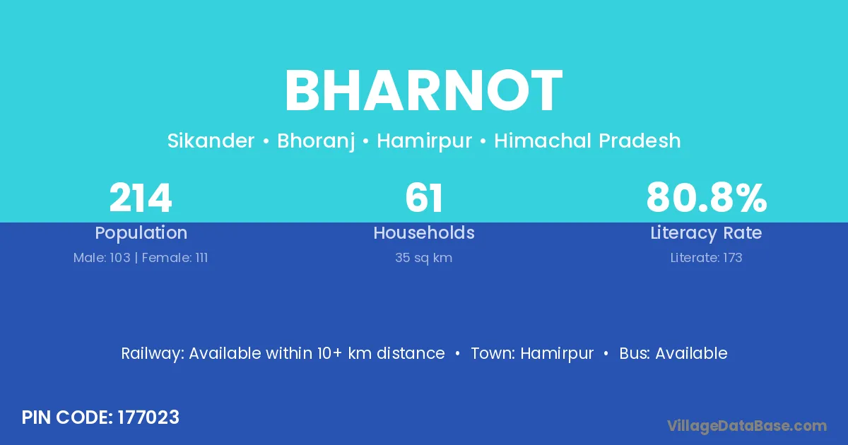 According to Census 2011 information, the village code of Bharnot village is 177023.